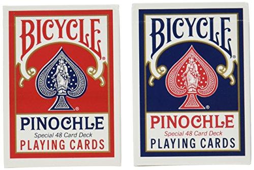 - Best value: 12 decks (6 red, 6 blue) of plastic-coated Bicycle Pinochle cards
