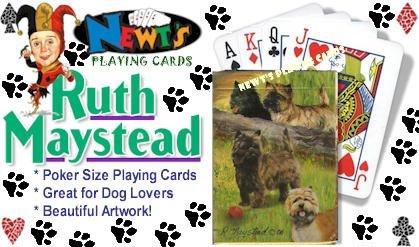 Cairn Terrier playing cards feature the stunning artwork of Ruth Maystead, These cards handle beautifully, are high quality and made in the USA. They come boxed (the box is in full color), they are poker sized (regular sized), and shrink wrapped. Entertain your family and friends as you shuffle and deal this beautiful deck of cards. Whether its bridge, poker or gin rummy enjoy your favorite card game with this wonderful deck of cards featuring your Best Friend. Ruth Maystead has painted enchanting, vibrant portraits of dogs, cats, & horses for over 30 years. Her unique style and ability to capture the essence of the animal as well as faultless anatomy makes her artwork popular with both collectors and animal lovers worldwide. These beautifully designed playing cards from her original artwork, gives everyone the opportunity to enjoy her designs.
