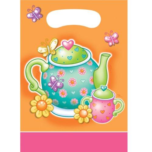 Tea Anyones Send your party guests home with goodies stashed in Tea Time Loot Bags for a gathering to remember. Pass out your favors in these adorable teapot favor bags when hosting a tea time tradition with friends and family. 8 tea party goody bags per package. Teapot favor bags are approximately 6 1/2 x 9. Made of plastic. Quantities Limited. Order now before they're gone forever! Celebrate the tea tradition with children of all ages! Stock up on tea party supplies for tea time, Mad Hatter parties, children's birthday events, and princess celebrations!