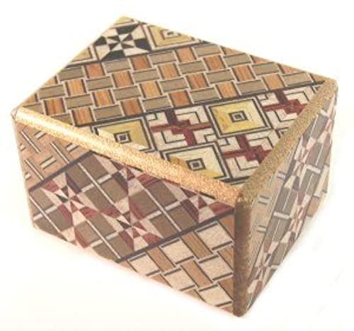 This Japanese Secret / Puzzle Box is made in the Yosegi pattern. This pattern is the original traditional design used for puzzle boxes. Every box is a little different in design depending upon how the pieces are applied. Each Japanese puzzle box is individually handcrafted using techniques passed down through the generations since the Edo Period and imported directly from the artists in Hakone Japan. Dimensions: 2.4 x 1.9 x 1.5 inches