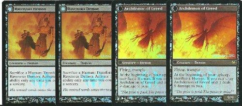 MTG RAVENOUS DEMON/ARCHDEMON OF GREED Dark Ascension Foil Flip Pre-Release Tournament Card X4