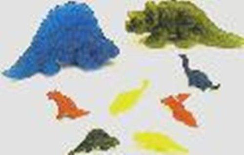 GROWING DINOSAURS Grow Beasts are available in six different dinosaur shapes and assorted colors (one per card / 3 per order). Although they are only a little bit over a half inch tall, when placed in a jar of water, they grow over 600% larger in a matter of hours. When taken back out, it will shrink down to original size, and can be used over and over. Non-toxic, but there is a choking hazard for children under three years old.